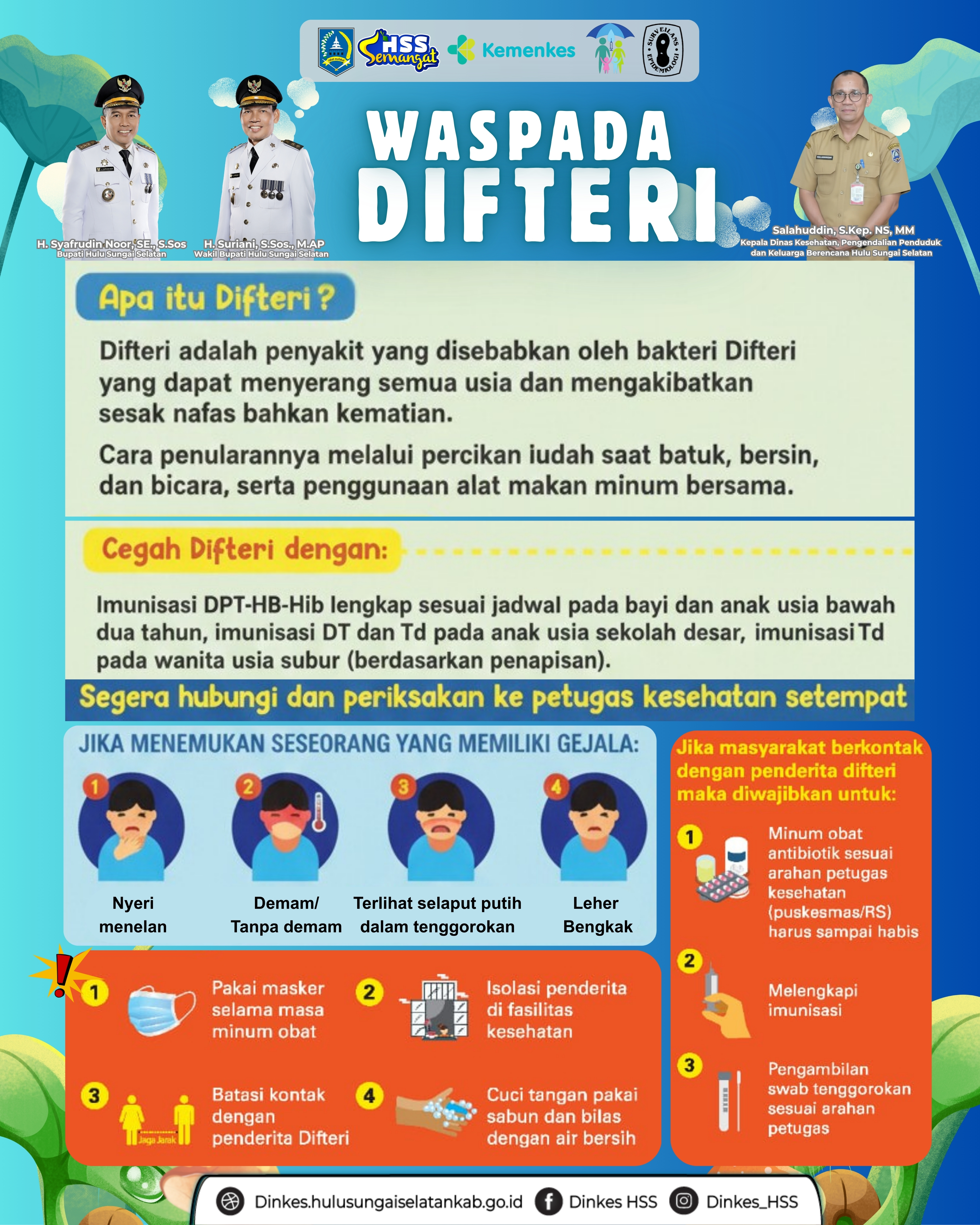 Difteri dapat dicegah dengan imunisasi lengkap. Segera periksa ke Puskesmas bila ada gejala.