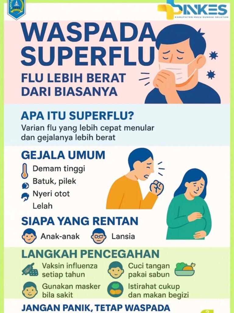 Superflu adalah varian flu yang lebih cepat menular dan gejalanya lebih berat dibanding flu musiman biasa. Gejalanya antara lain demam tinggi, batuk, pilek, nyeri otot, dan rasa lelah berkepanjangan.